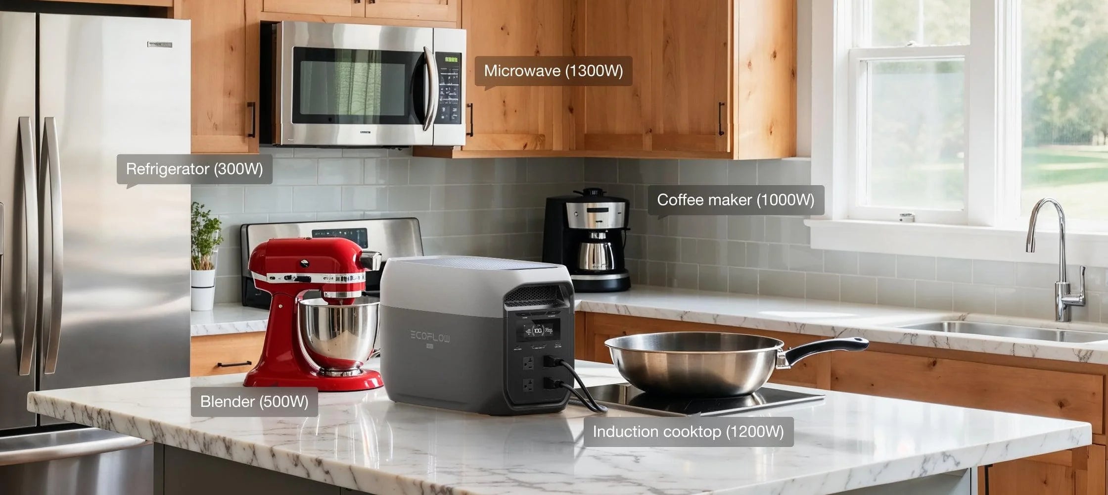 EcoFlow DELTA 3 Max (2048Wh) delivers 2400W AC rated output. With X-Boost™ 3.0 technology, it supports devices up to 3400W—effortlessly taking on your heavy-duty appliances. The inverter samples AC voltage and current every 33μs with high precision using a DSP chip, ensuring pure sine wave output with beyond grid-level stability—ideal for powering sensitive electronics reliably.